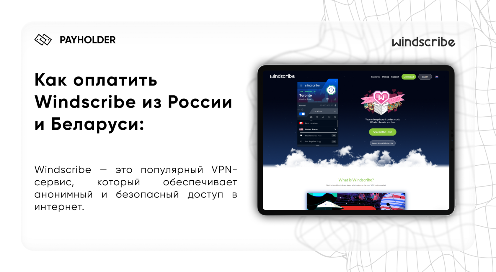 Если вам срочно нужна подписка Windscribe, но стандартные способы оплаты недоступны, PayHolder — это лучшее решение.