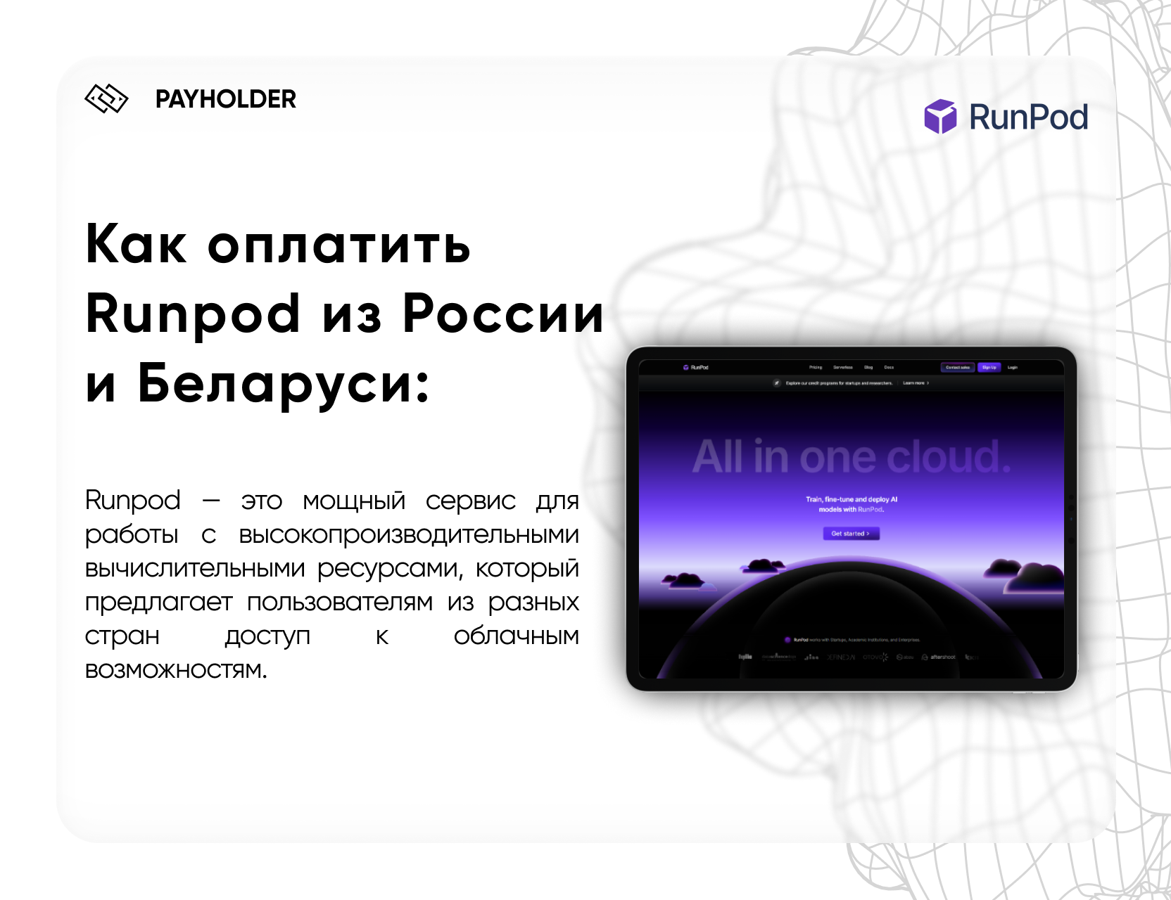 Как оплатить Runpod из России с помощью PayHolder?